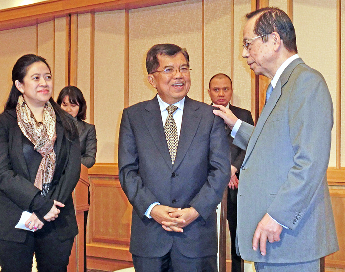安倍晋三首相は21日、東京の帝国ホテルでカラ副大統領と短時間会談し、インドネシアのインフラ開発など経済協力の拡大で引き続き協力することで一致した。 外務省.....