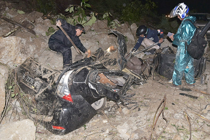 ゴロンタロ州ボネ・ボランゴ県南スマワ村で崩落した橋。隣り村と結ぶ地域住民の大切なルートだが大雨で水流が増し、19日に崩落した。(アンタラ).....