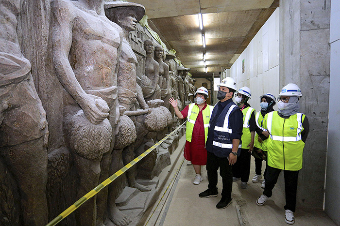 6日、西ヌサトゥンガラ州ロンボク島のマンダリカ国際サーキットで、観客席を整備する作業員。今月18~20日に開催されるモトGP(ロードレース世界選手権)に向け、.....