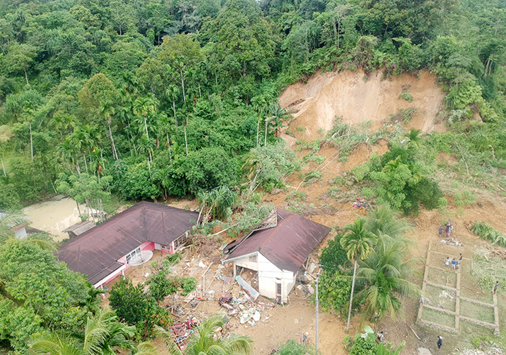 バンテン州パンデグラン県で2日、洪水で被災した自宅の状況を確認する住民。(アンタラ) .....