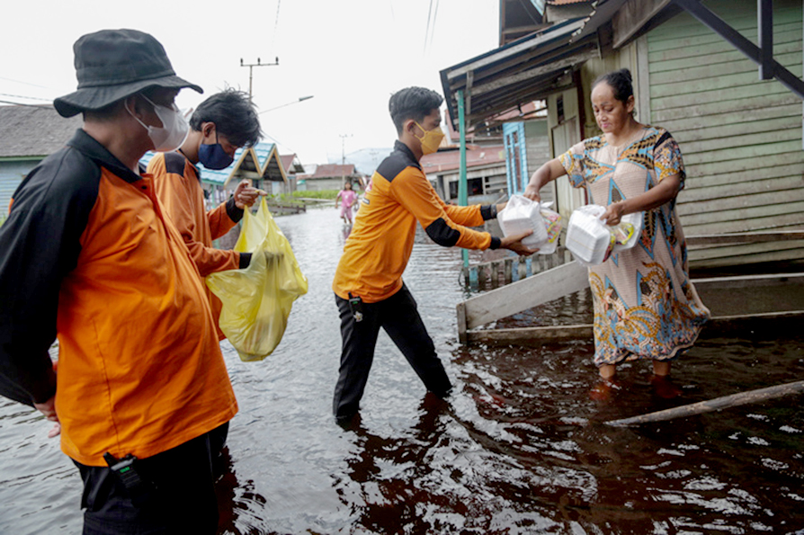 13日、東ジャワ州ジュンブル県パヤンガンで、海水浴客を救助する国家捜索救助隊(BASARNAS)。24人が高波に飲まれ、13人救助されたが10人が死亡、1人が.....