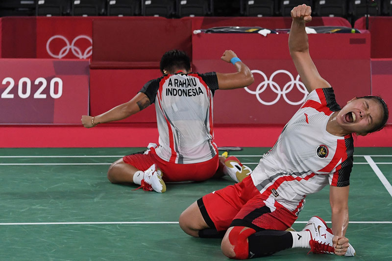 23日、アチェ州バンダアチェ市にある記念碑を眺める観光客。2004年12月26日にスマトラ沖地震・インド洋大津波が発生した。記念碑は被災地アチェを支援した国々.....