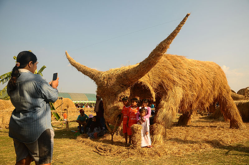 バリ・ヒンドゥーの正月にあたるニュピを7日に控え、悪天候が続く東ジャワ州クディリで、悪霊をかたどった人形「オゴオゴ」の制作が滞っている。張りぼてを貼り付けるた.....