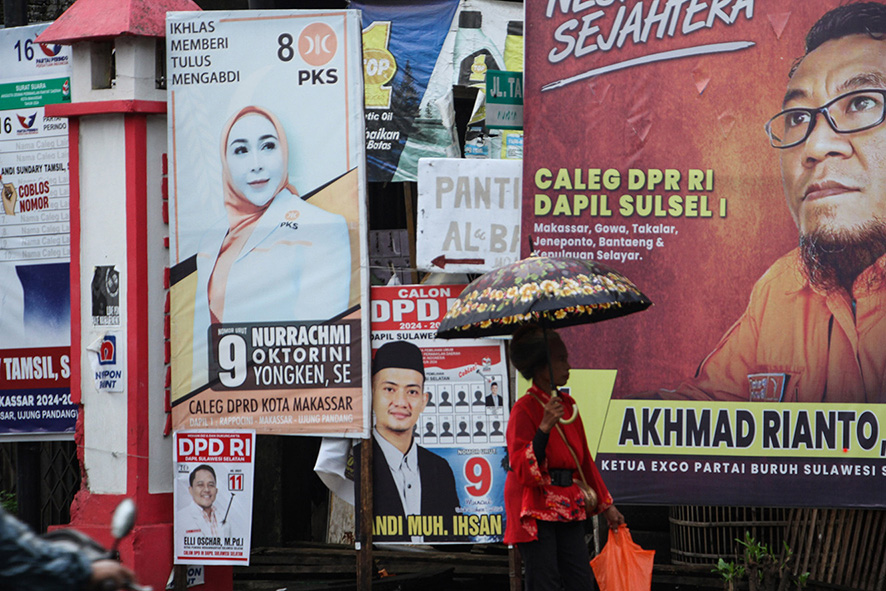 バンテン州パンデグラン県のスンダ海峡で24日、海上で行う伝統の人形劇「ルワット・ラウト」を見る漁師たち。豊漁を祝いヒジュラ暦(イスラム暦)の毎年1月に行われる.....