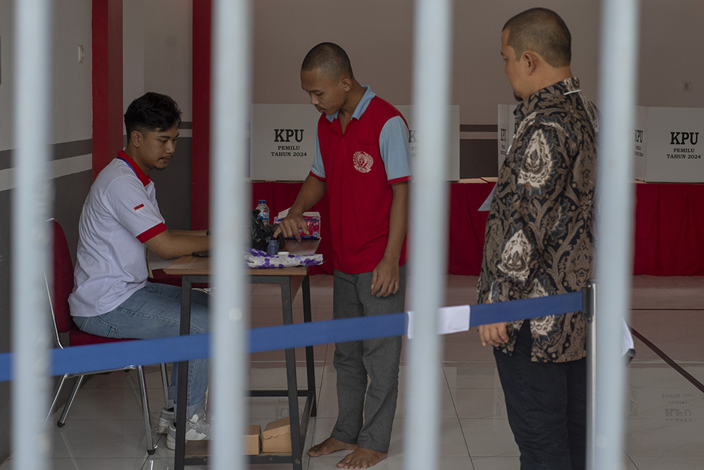 西ジャワ州ボゴール市で23日、同市の小学校を訪問する次期副大統領のギブラン・ラカブミン・ラカ氏。2025年の予算案に盛り込まれる「無料給食プログラム」に沿った.....