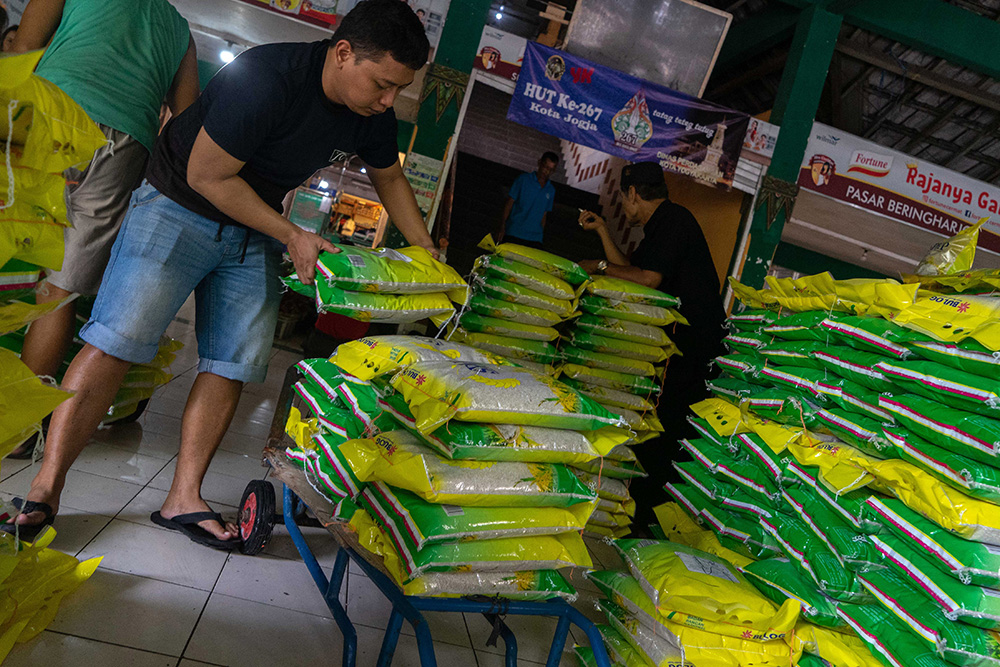 中部ジャワ州トゥマングン県で1日、ジャガイモを収穫する農家たち。収穫量は1㌶あたり約10~15㌧。異常気象のため通年に比べて半減しているという。(アンタラ).....