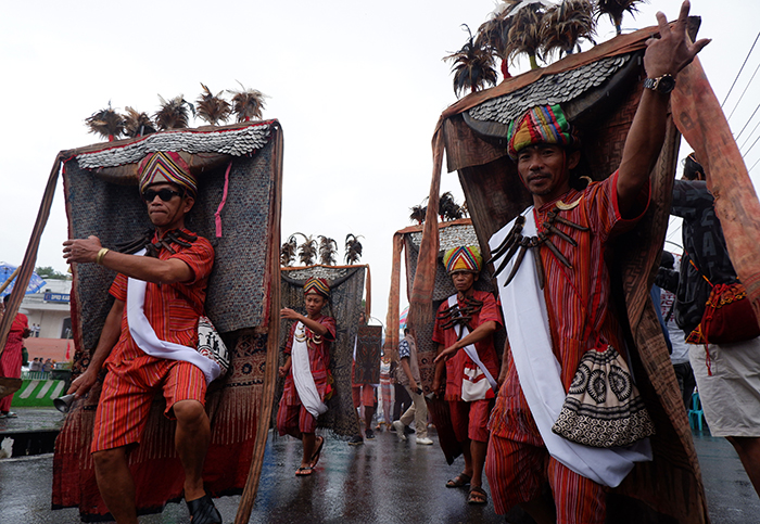 中部ジャワ州ジュパラ県で20日、伝統祭「ジャンブル」に参加する住民たち。年に1度開催され、村に自然災害が発生しないよう祈願した。(アンタラ).....