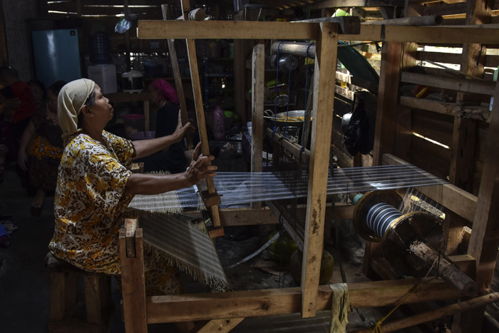 ジョクジャカルタ特別州ミンギラン村で27日、植物の葉や花など環境に優しい材料で再生紙を作る職人。1冊あたり10万ルピアで販売される。(アンタラ) .....